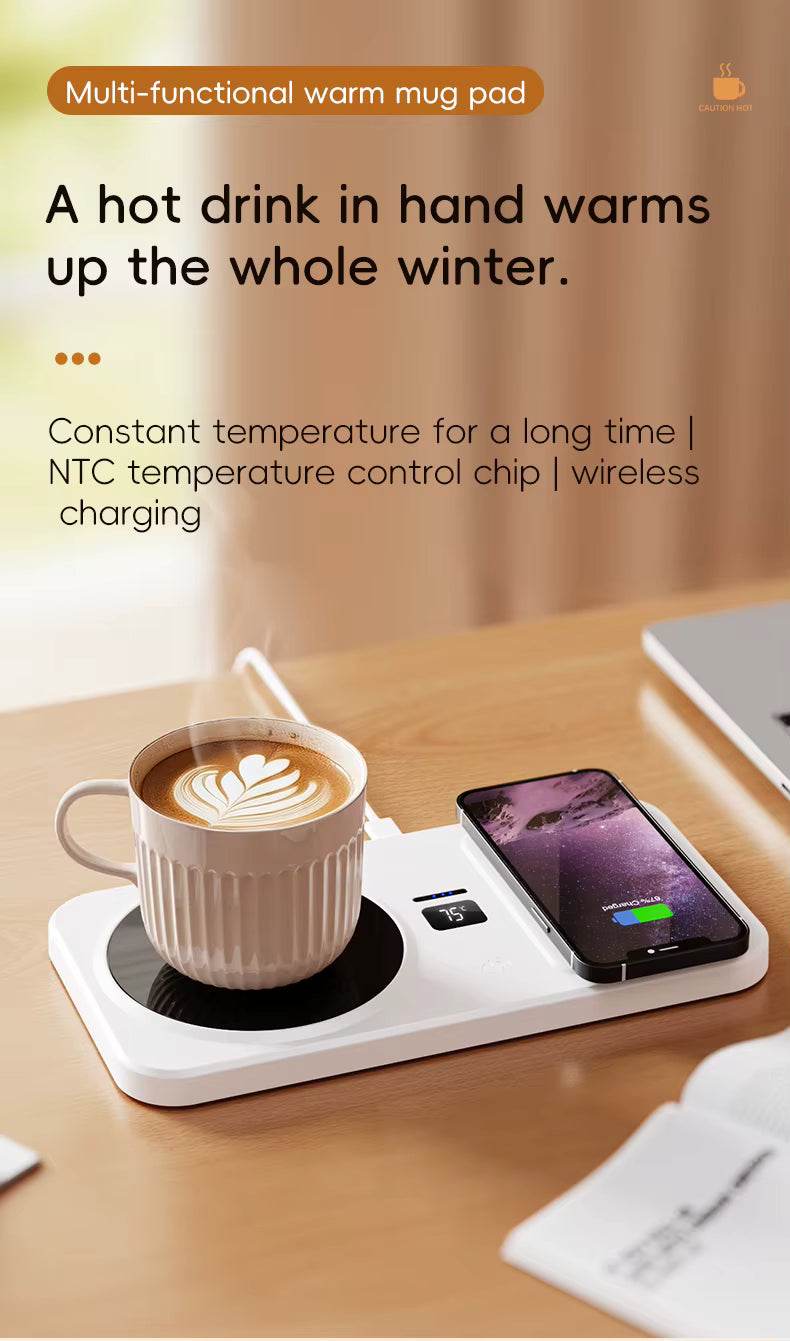 2-in-1 design- Mug Warmer + Wireless Charging Pad